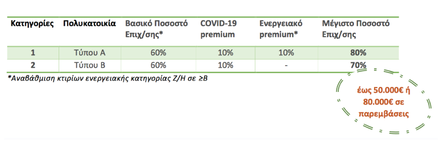 Τα ποσοστά επιδότησης για πολυκατοικίες είναι: